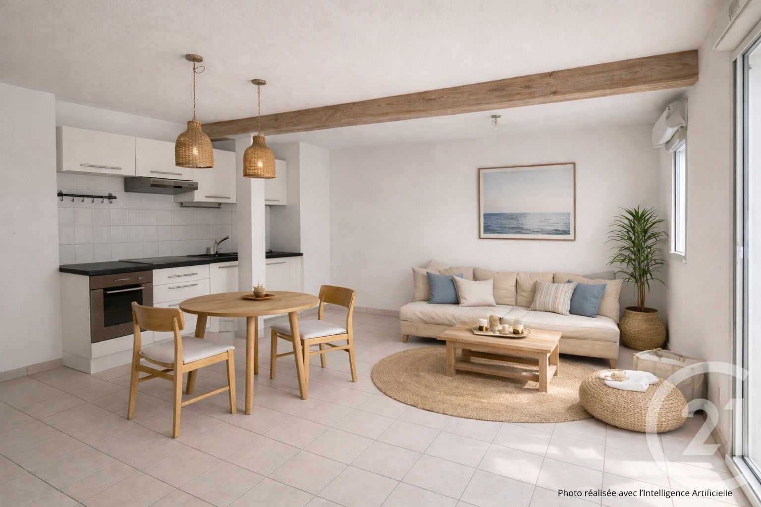 Une pièce de vie lumineuse avec cuisine ouverte